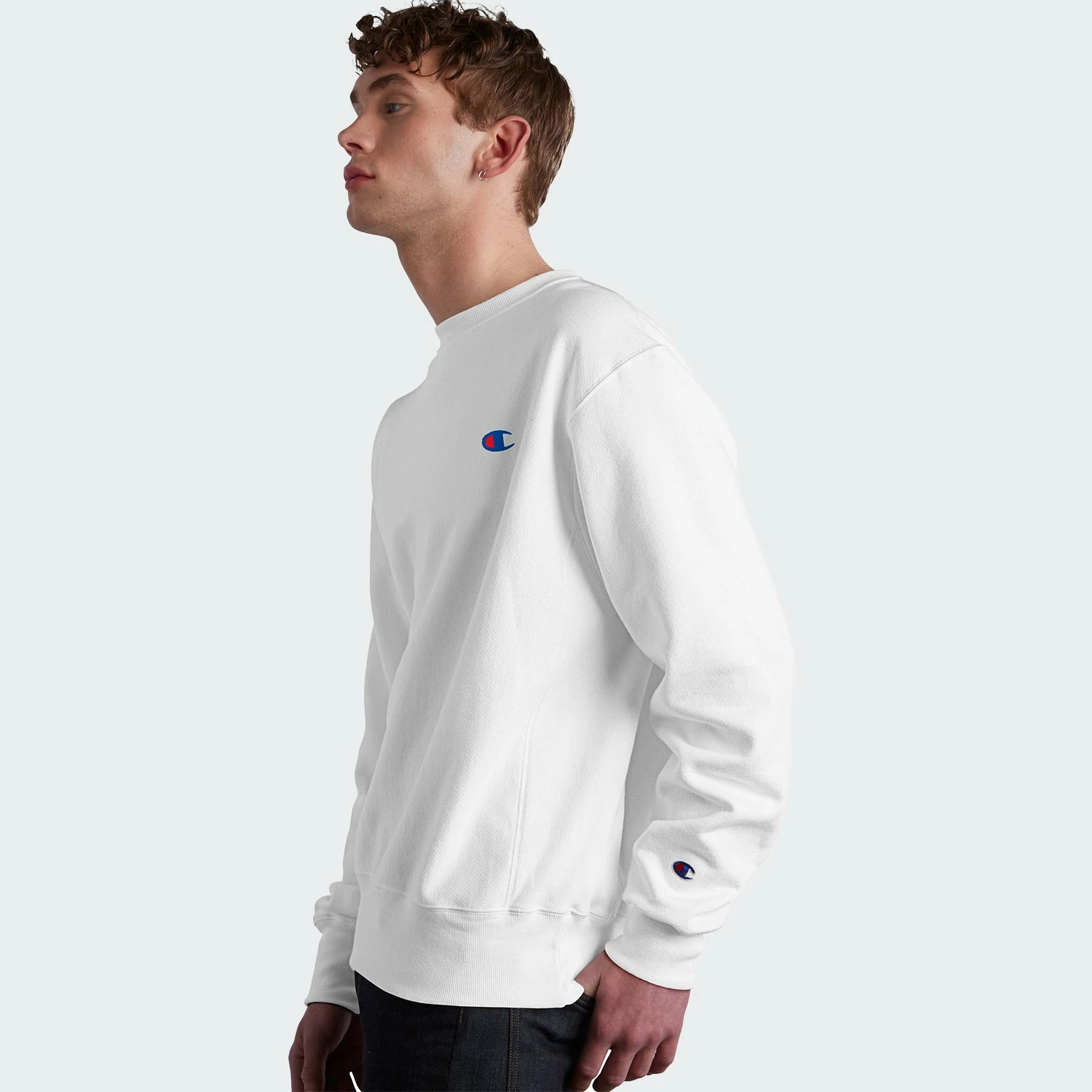 The sweatshirt that’s been around for a long time. 80 years. The Champion Life Reverse Weave Crew Sweatshirt is constructed of all the details you’ve come to love. Signature stretch side panels, double-needle construction, heavyweight Reverse Weave fleece, and the soft brushed interior. Resists vertical shrinkage so the fit stays put. Comes in White with Champion details on the chest and cuff.