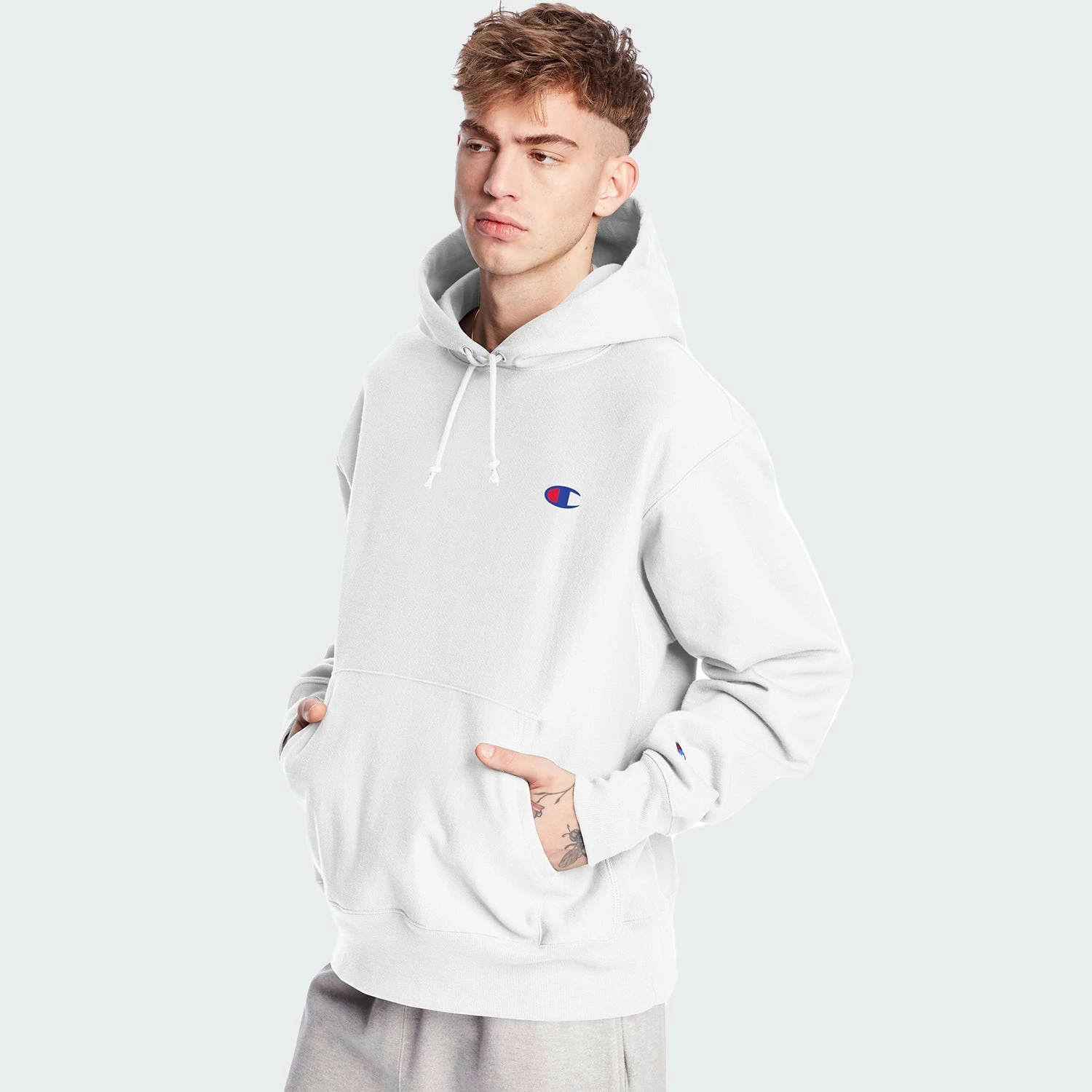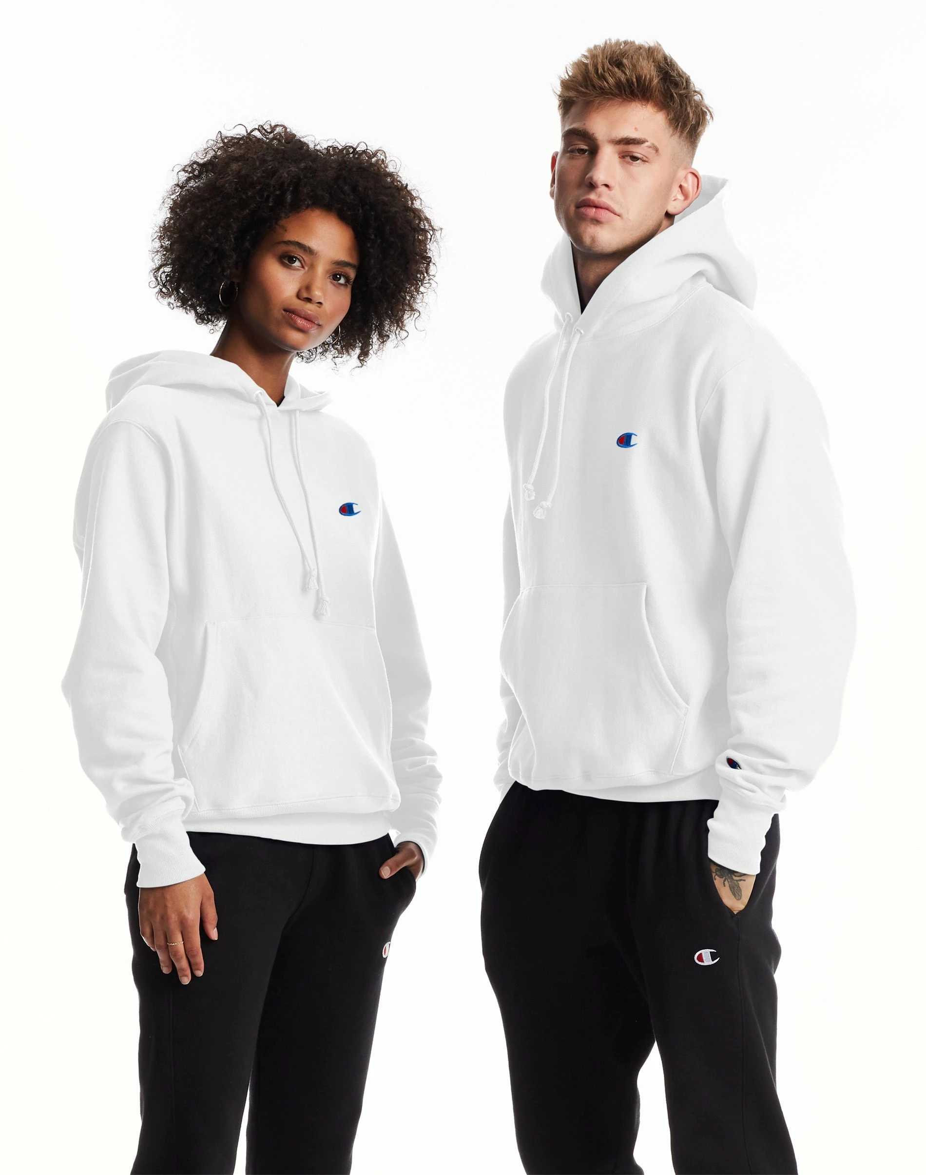 Champion for life. The Champion Life Reverse Weave Hoodie is a classic hoodie with iconic Champion details. Embroidered Champion logos sit on the chest and cuff. Comes in White.