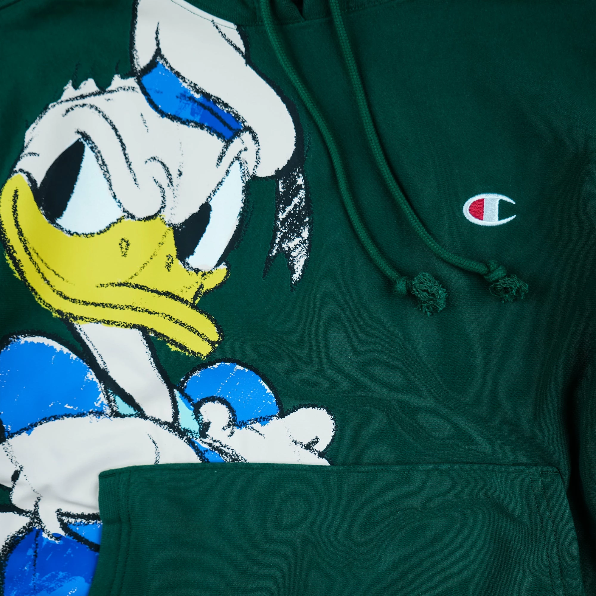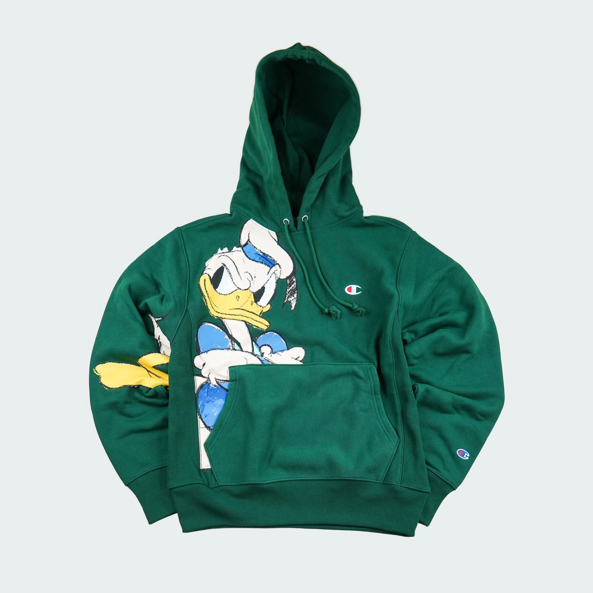 It’s Donald! Add nostalgia to your day with the Champion Reverse Weave Donald Duck Hoodie. Donald shows up on the hoodie made to fit everyone with heritage details such as the double-layer hood, hand-warming kangaroo pocket, durable double-needle construction and signature stretch side panels that stand the test of time. Embroidered Champion logo sits on the cuff.