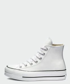 Women’s Converse Clean Leather Platform Chuck Taylor All Star Shoes White WHITE