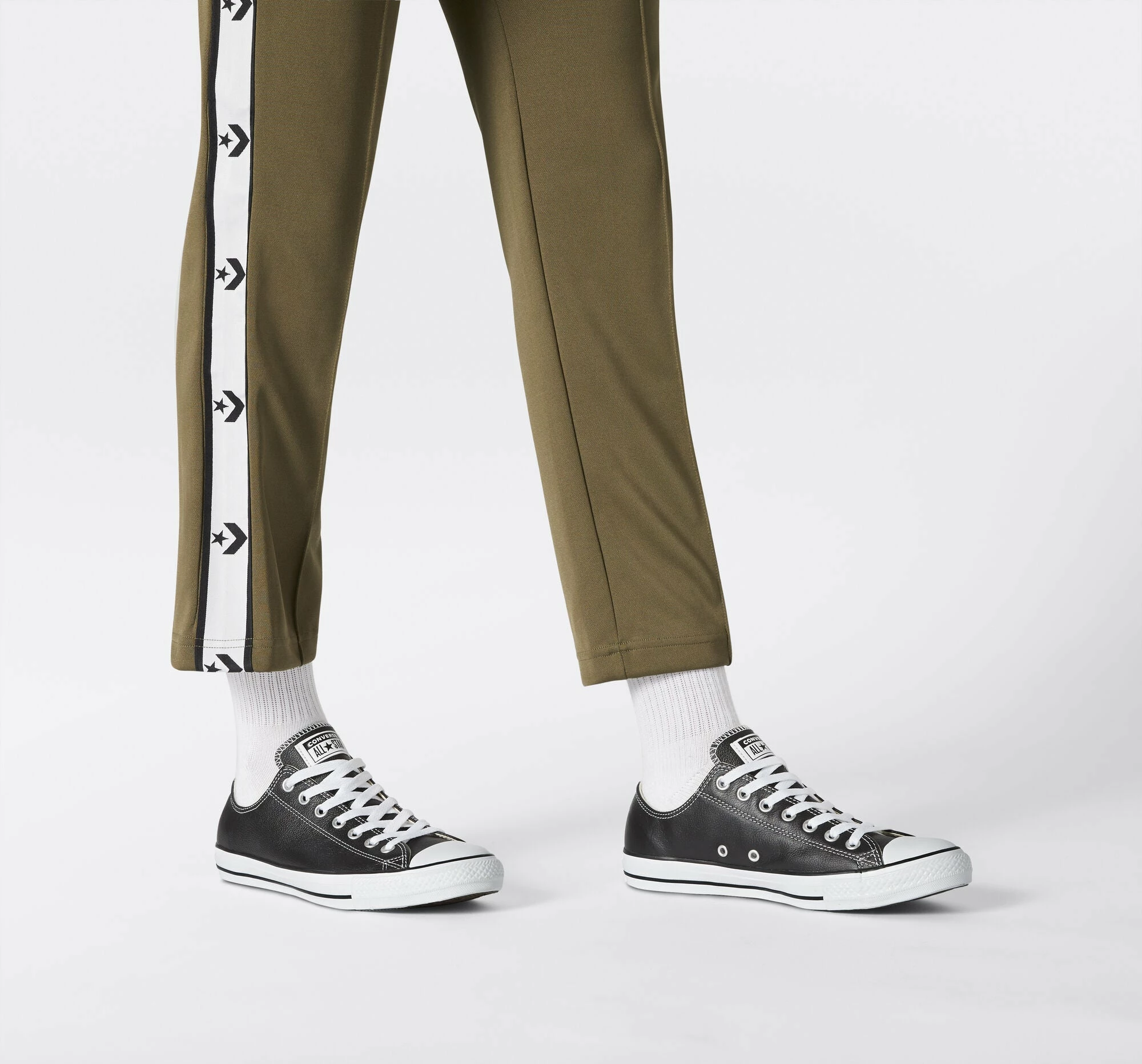 Anytime, anywhere. These everyday icons represent simplicity at its best. The leather version of the Converse Chuck Taylors are constructed of super-soft luxe leather for a smooth look and feel. The Chucks are made with cushioned OrthoLite sockliners. The midsole stripes and diamond pattern outsoles, and license plates are the mainstays.ย
