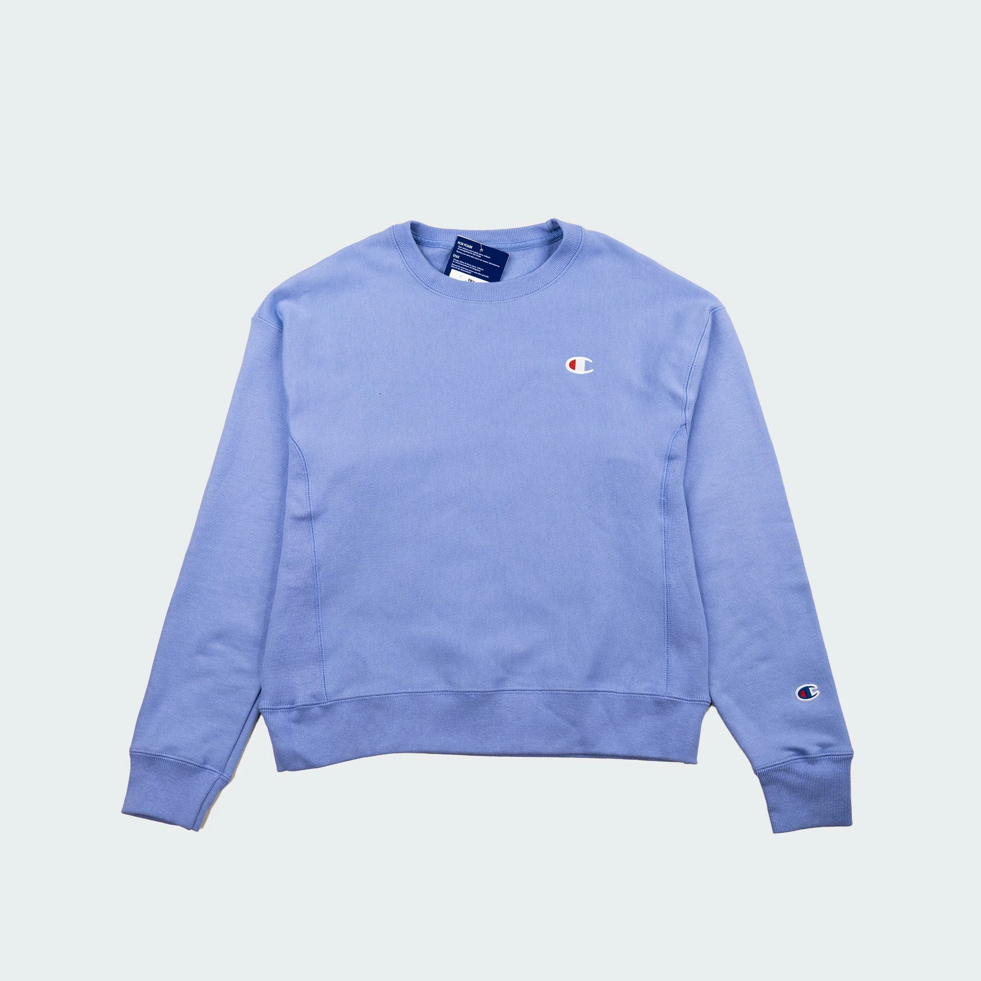 Tailored to a women’s fit, the Champion Reverse Weave Crew Sweatshirt fits relaxed through the body and waist. Double needle construction ensures extra durability. Pair with you favorite pair of biker shorts, jeans, or leggings. Comes in Charming Blue.