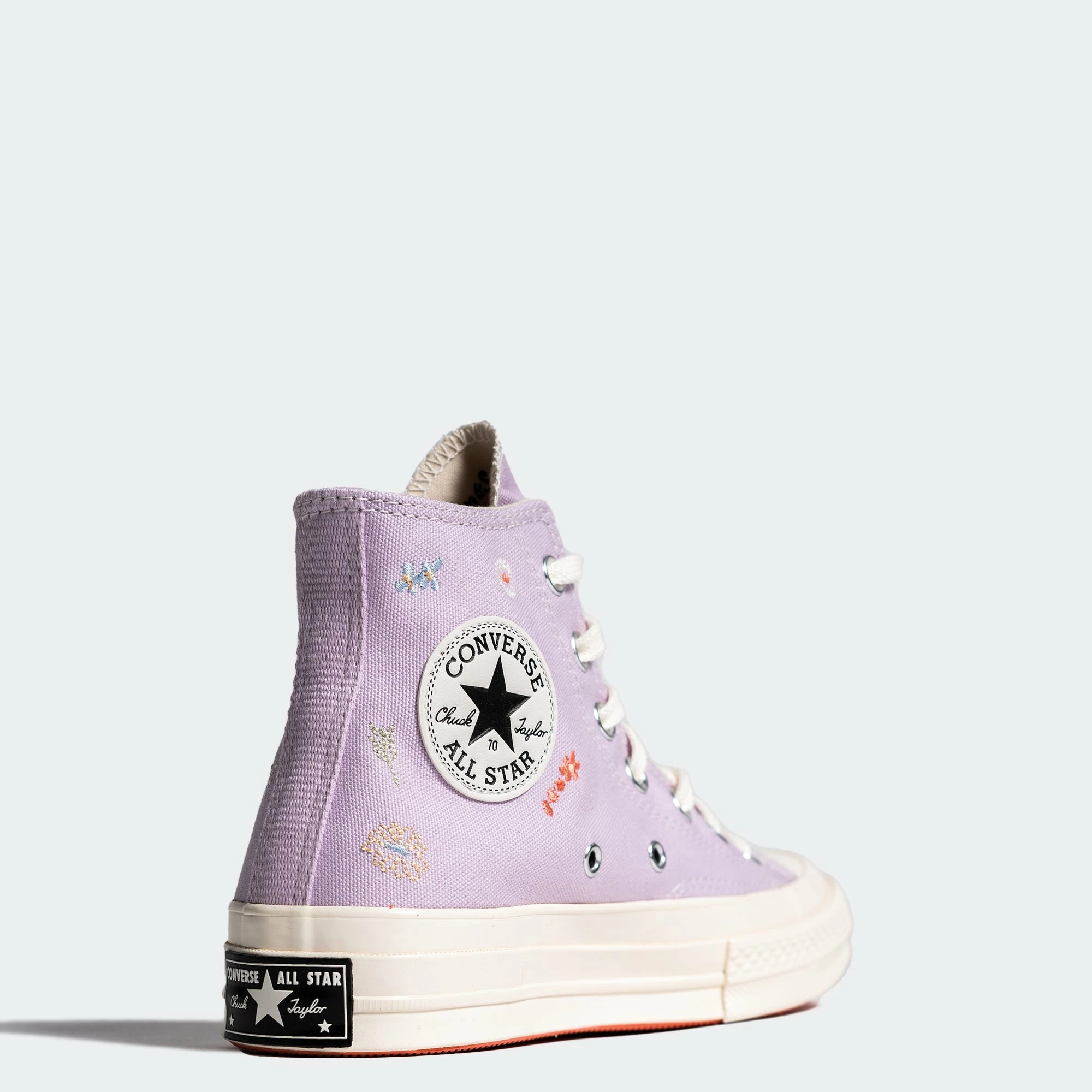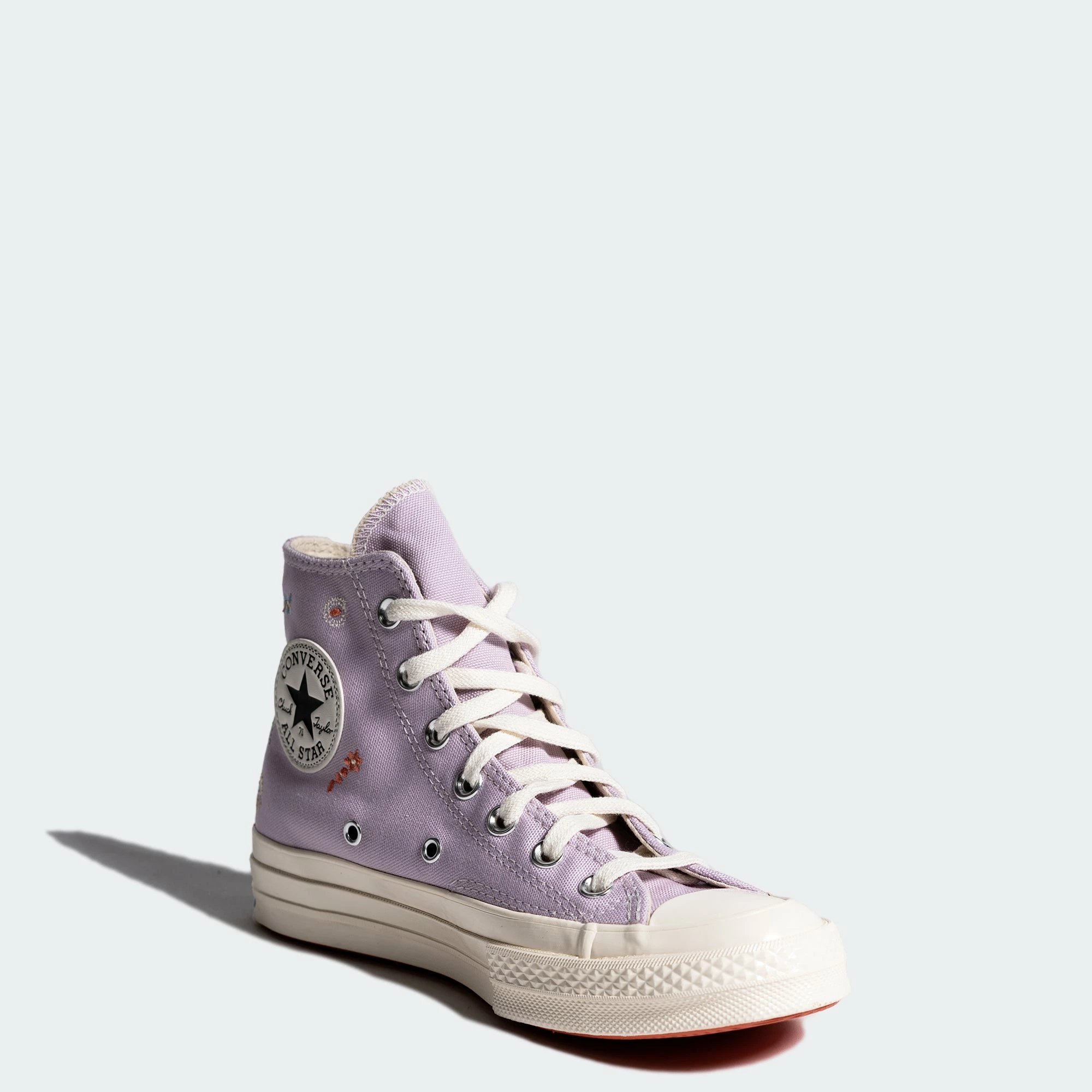 Flowers always make the day sweeter. Built with summertime canvas the Converse Chuck 70 High Top Things To Grow Shoes give off the iconic cool vibe with floral details along the sides. Its high profile silhouette and classic details such as the star ankle patch and rubber toe cap keep them authentic.